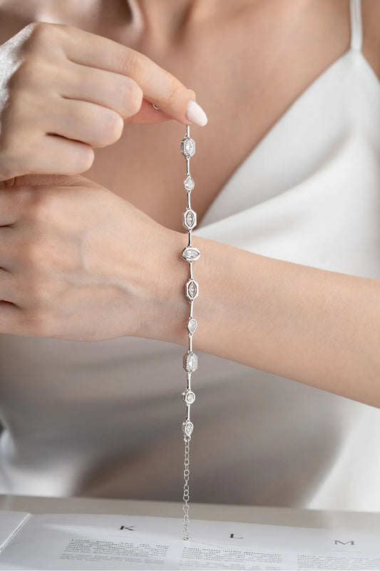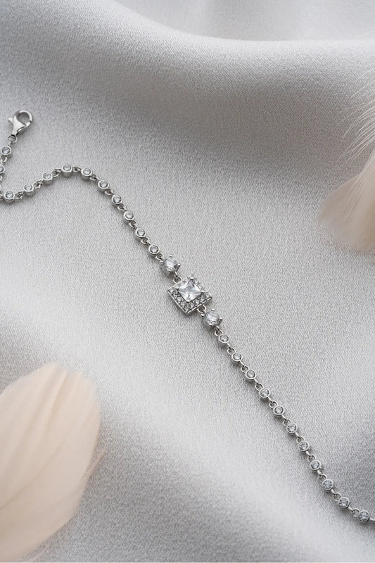 925 Bracelet en argent sterling avec conception de pierre carrée et pavée