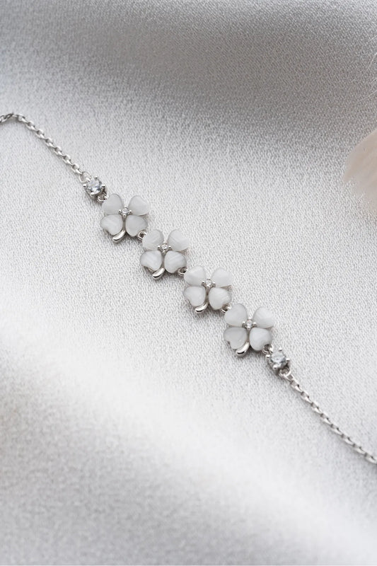 925 Bracelet en argent sterling avec 4 trèfles de nacre