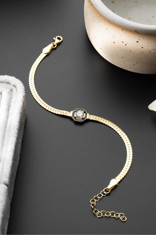Bracelet en argent sterling 925 plaqué or & Émail noir
