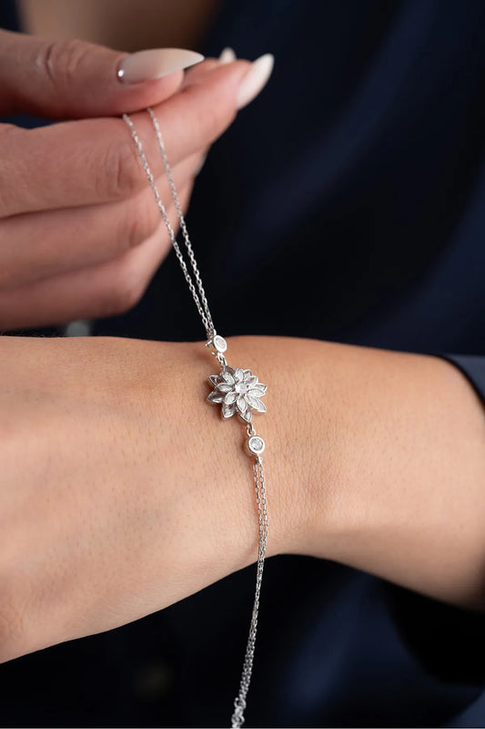 925 Bracelet en argent sterling avec zircone blanche et conception de lotus