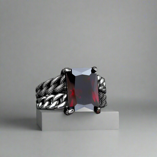Bague pour homme en argent 925 avec pierre d'agate rouge LMR505