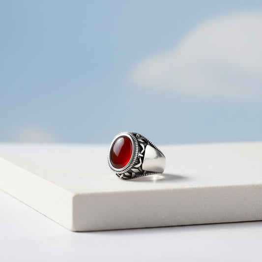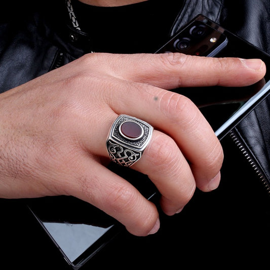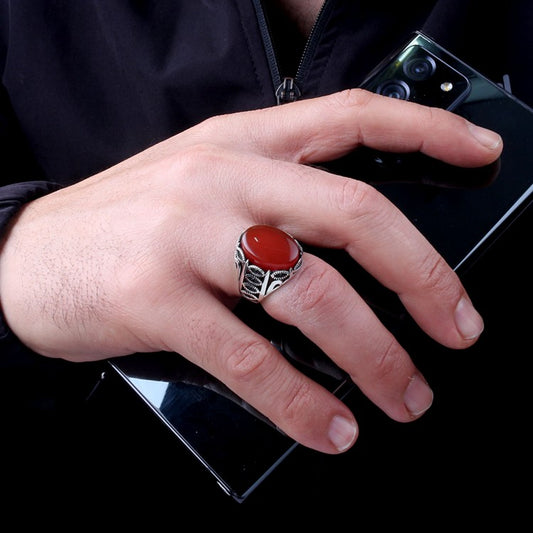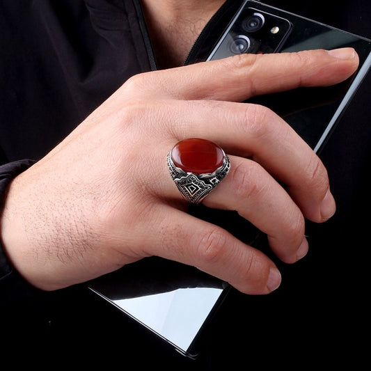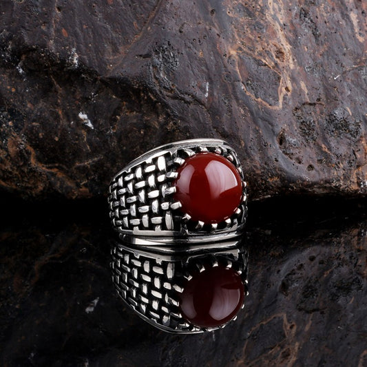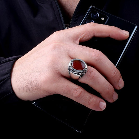 Bague pour homme en argent 925 avec pierre d'agate rouge LMR266
