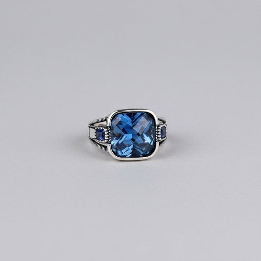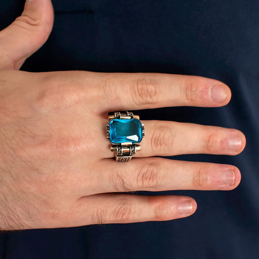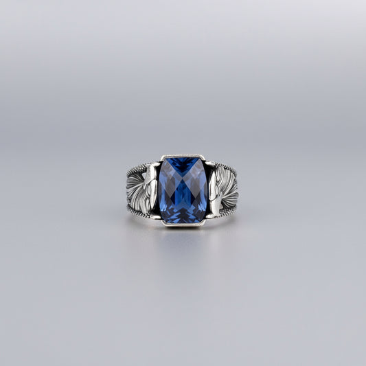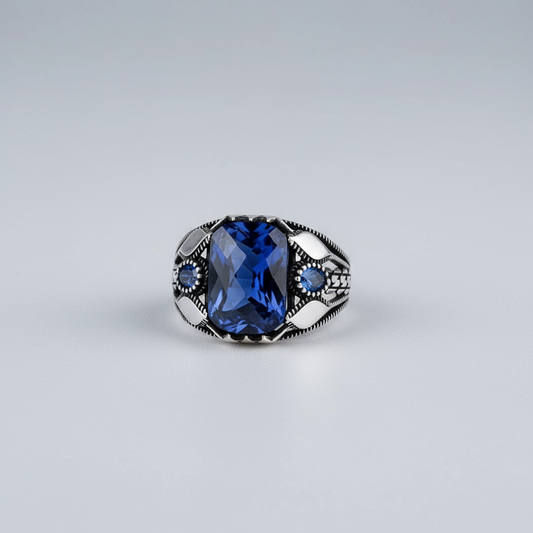 Bague pour homme en argent 925 avec pierre bleu foncé