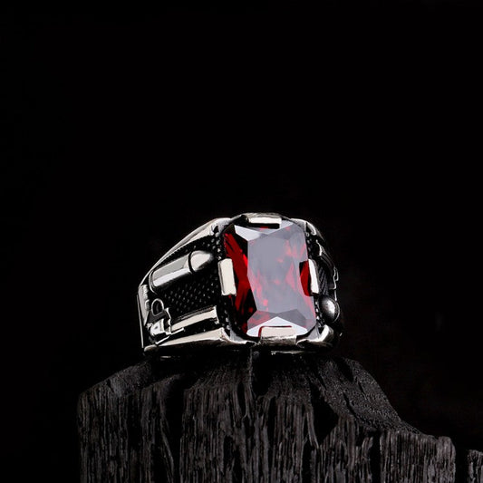 Anneau d'hommes avec zircone verte - 925 Silver Silver