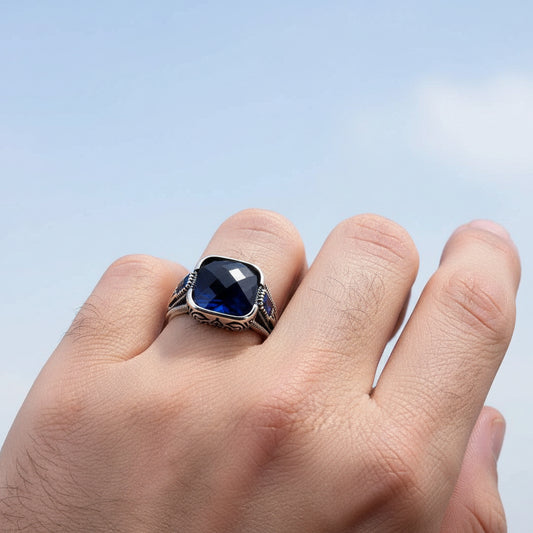 Bague pour homme en argent 925 avec pierre bleue