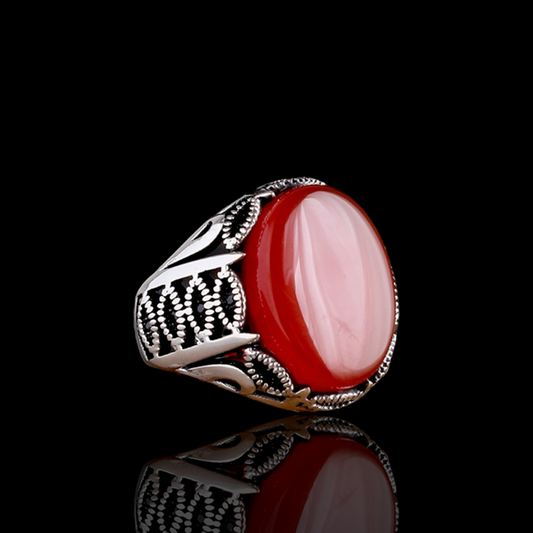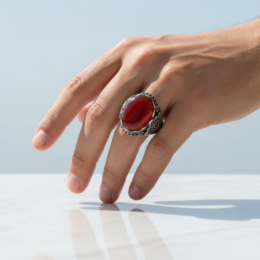 Bague pour homme en argent 925 avec pierre rouge