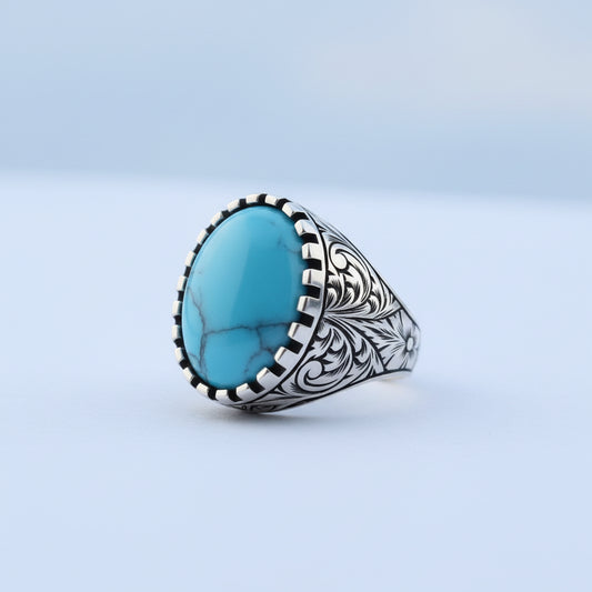 925 Anneau d'hommes en argent sterling avec pierre turquoise