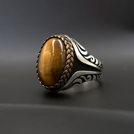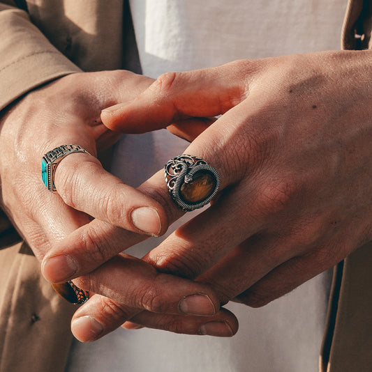 Bague serpent - argent sterling 925 avec oeil de tigre