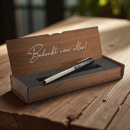 Stylo personnalisé - Set d'écriture avec coffret en bois gravé