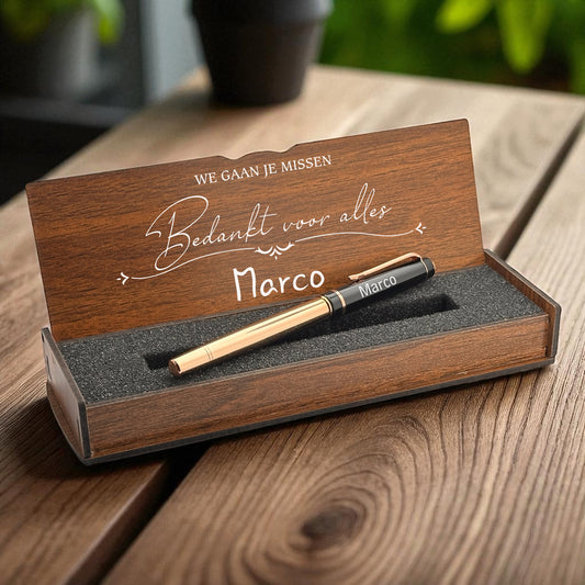 Stylo personnalisé dans un coffret en bois – Adieu & Cadeau de remerciement