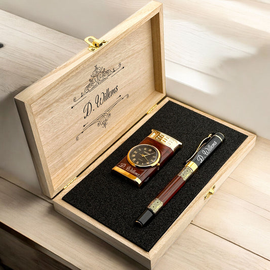Personnellement gravé plus léger avec une montre-cadeau de montre et de rouleaux - dans la boîte en bois D1