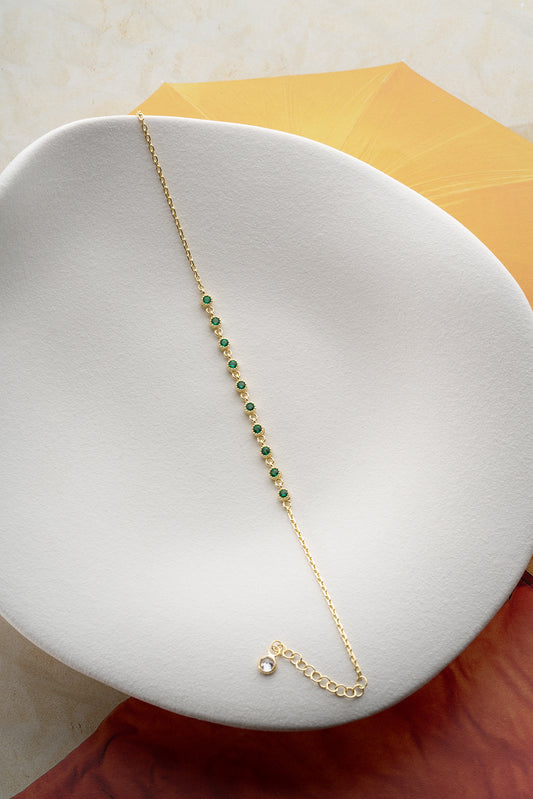 Bracelet en argent avec des pierres vertes et une conception de chaîne fine