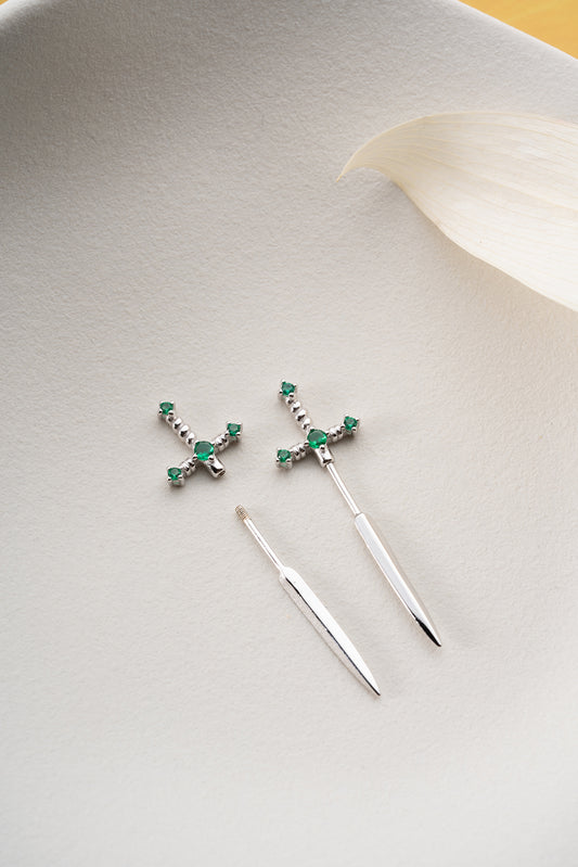 Boucle d'oreille d'épée en pierre verte - design minimaliste