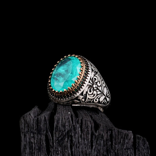 Anneau d'hommes avec paraiba pierre - 925 argent sterling