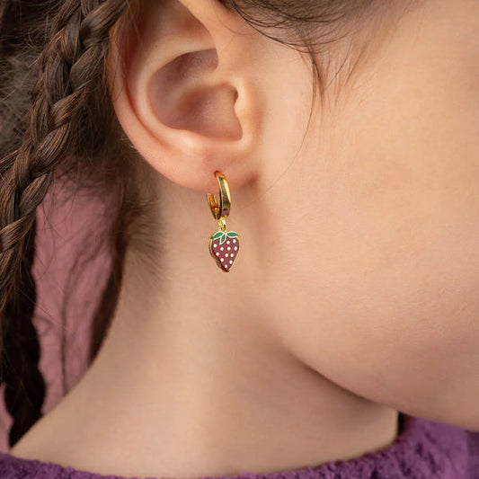 Boucles d'oreilles enfant Fraise – Argent 925 Plaqué Or