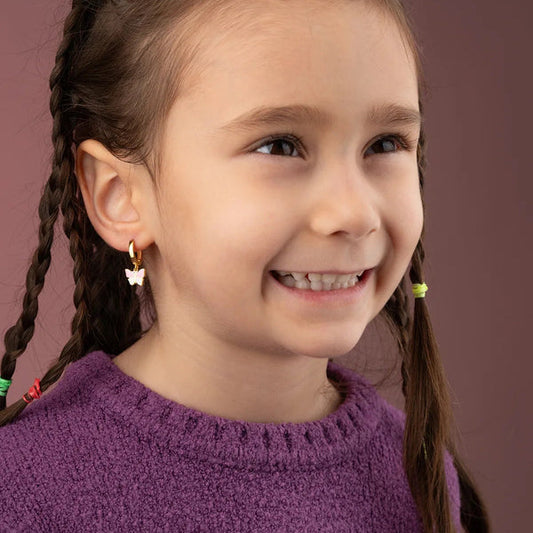 Boucles d'oreilles enfant avec papillon - Argent sterling 925 & Émail
