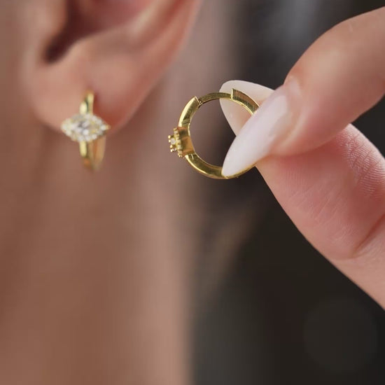 Elegant hoop earrings made of 925 silver with a marquise-cut center stone and shimmering accents.