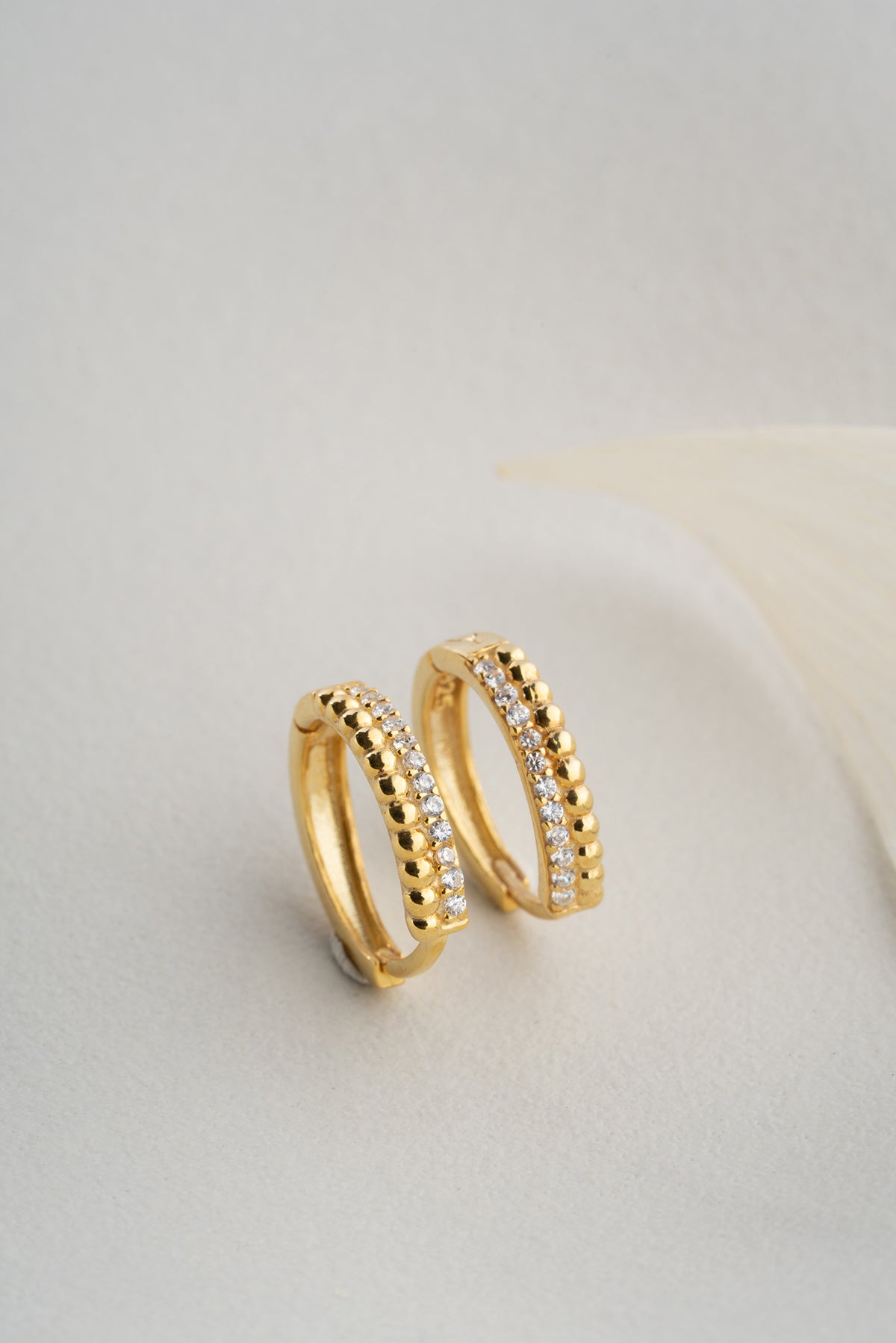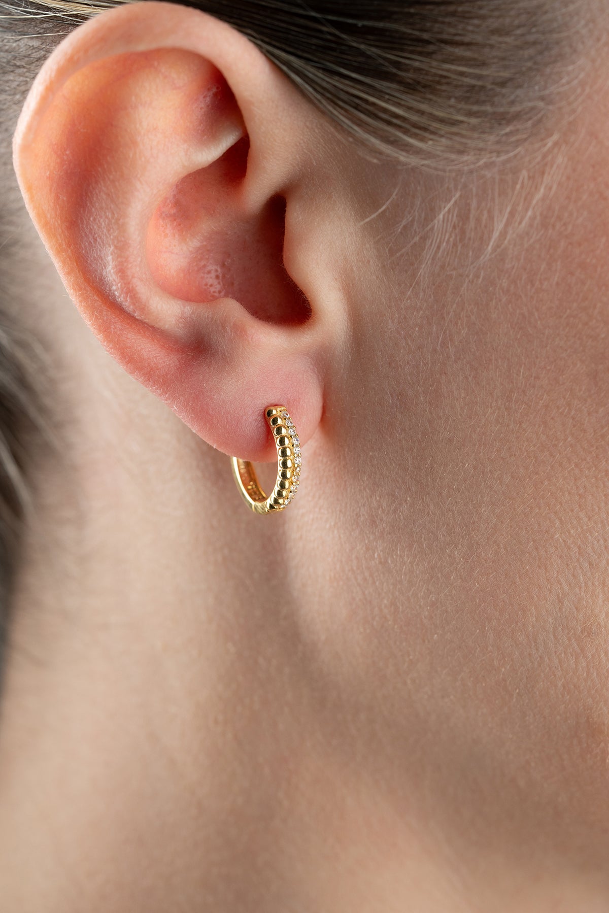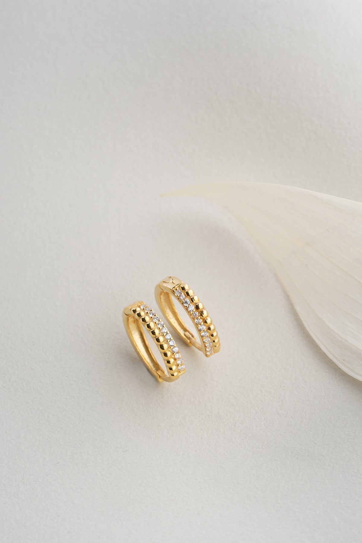 Ces élégantes créoles sont fabriquées en argent sterling 925 et ornées d'une rangée de perles métalliques et de pierres scintillantes. Un mariage parfait de simplicité et d'élégance, idéal en toute occasion.