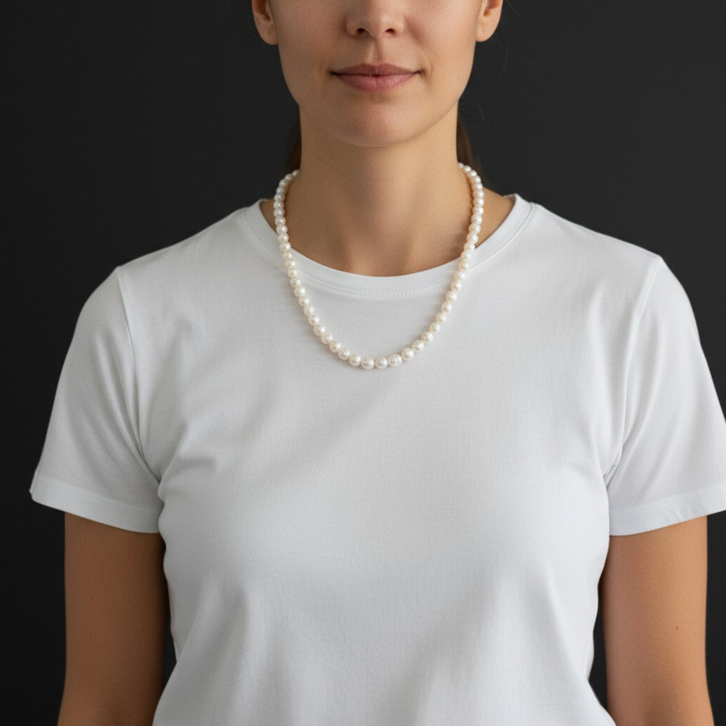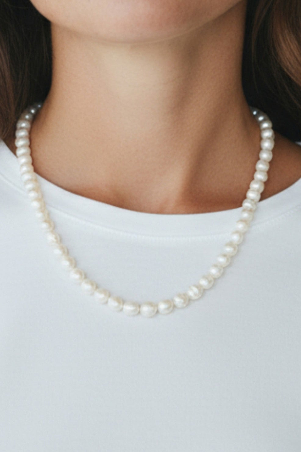 Sierlijke halsketting met echte cultuurparels en 925 zilveren clip‑sluiting – stijlvol en elegant.