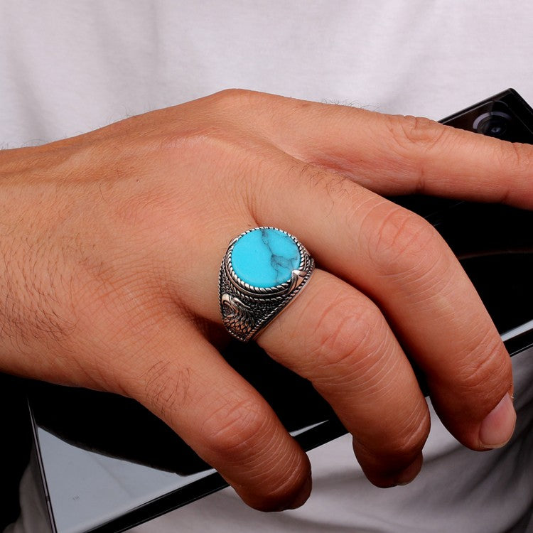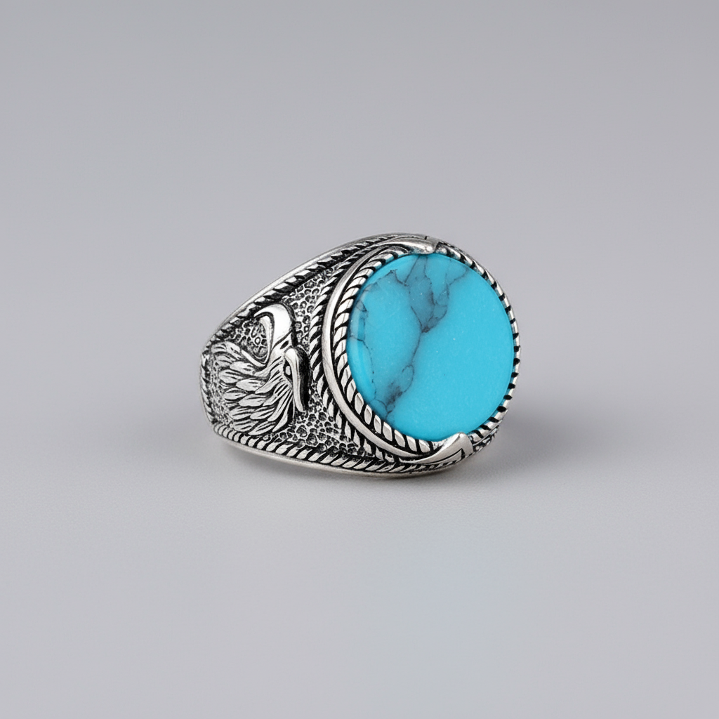 925 Zilveren Herenring met Turkoois en Adelaar Motief