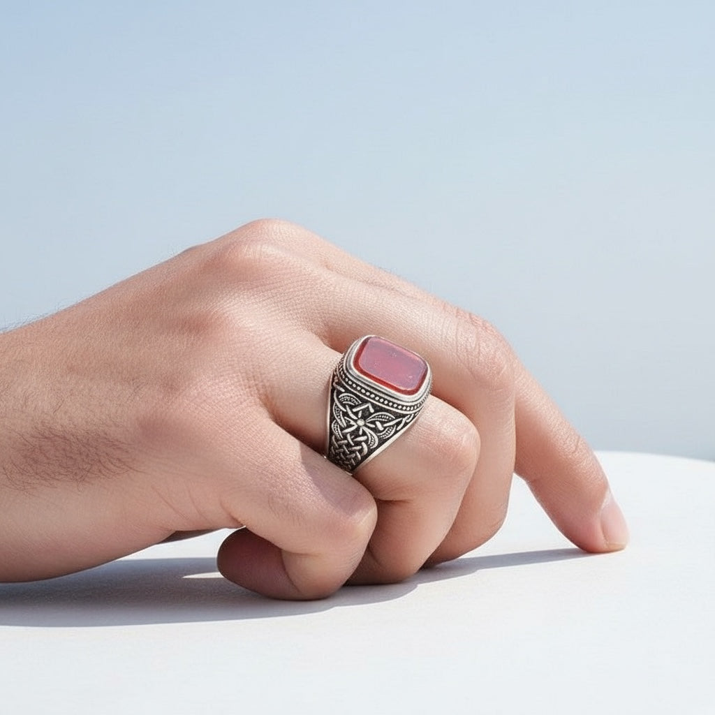 Anneau d'hommes avec une étoile de boussole de 925 argent sterling