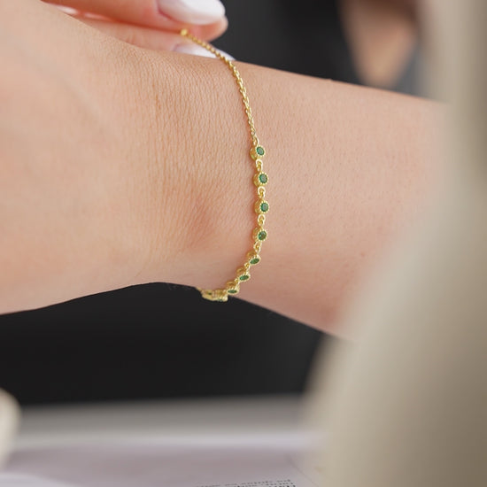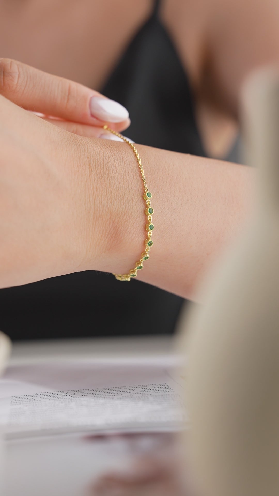 Ce bracelet raffiné orné d'émeraudes est l'accessoire idéal en toute occasion. Sa chaîne plaquée or respire l'élégance, tandis que sa légèreté assure un confort optimal au quotidien.