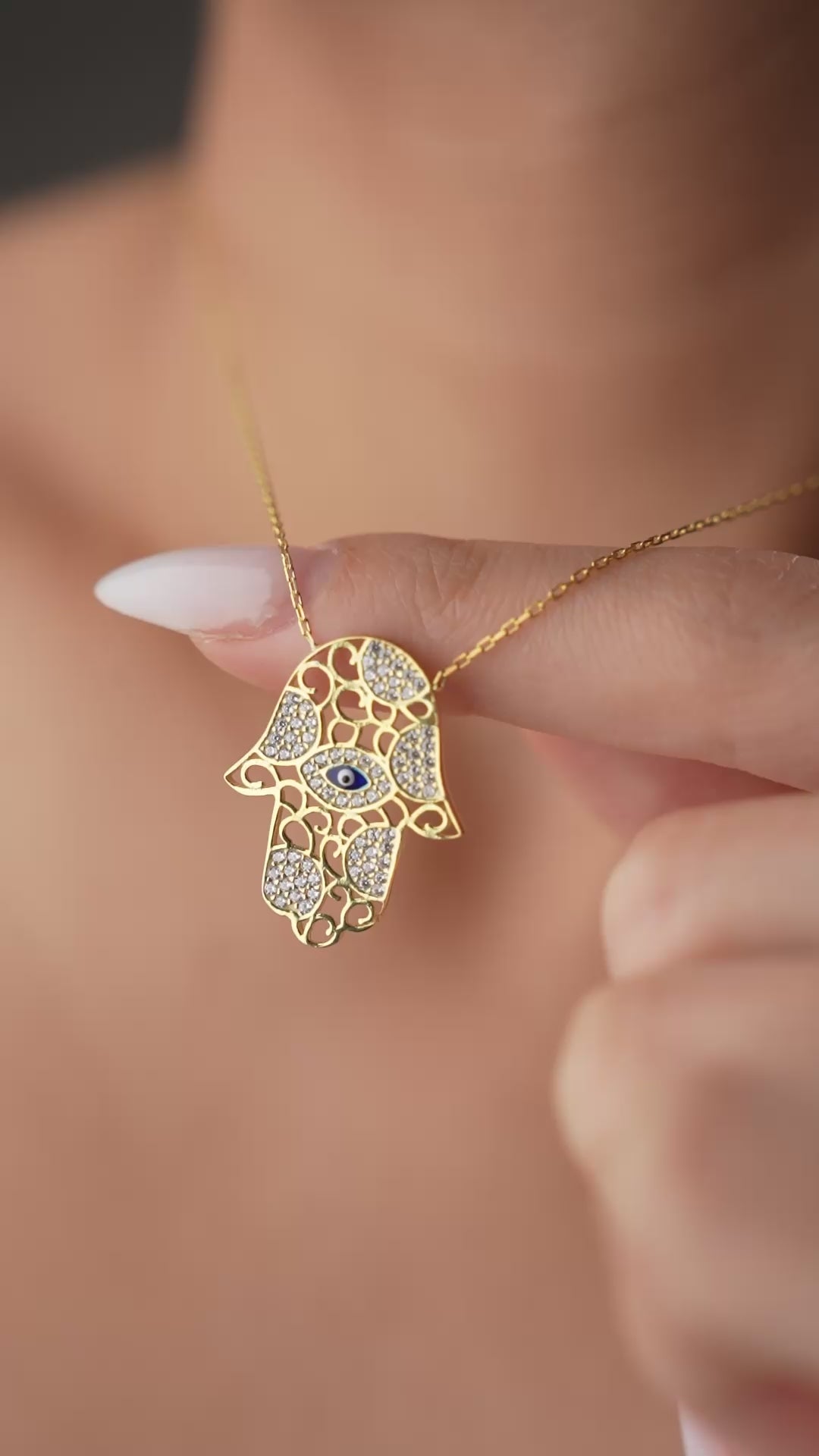 Hamsa Hand Ketting met Oog - 925 Zilver Verguld