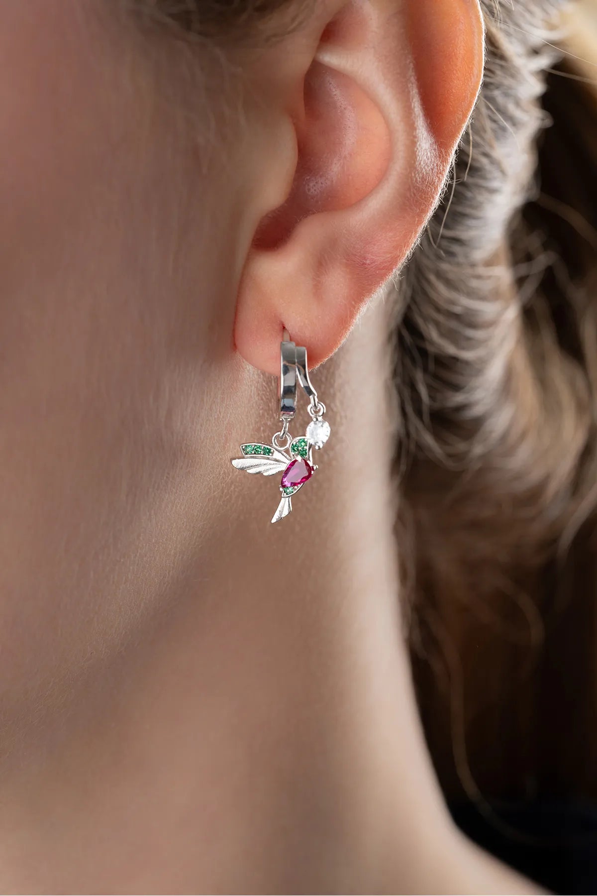 Charme de colibri - 925 boucles d'oreilles en argent sterling