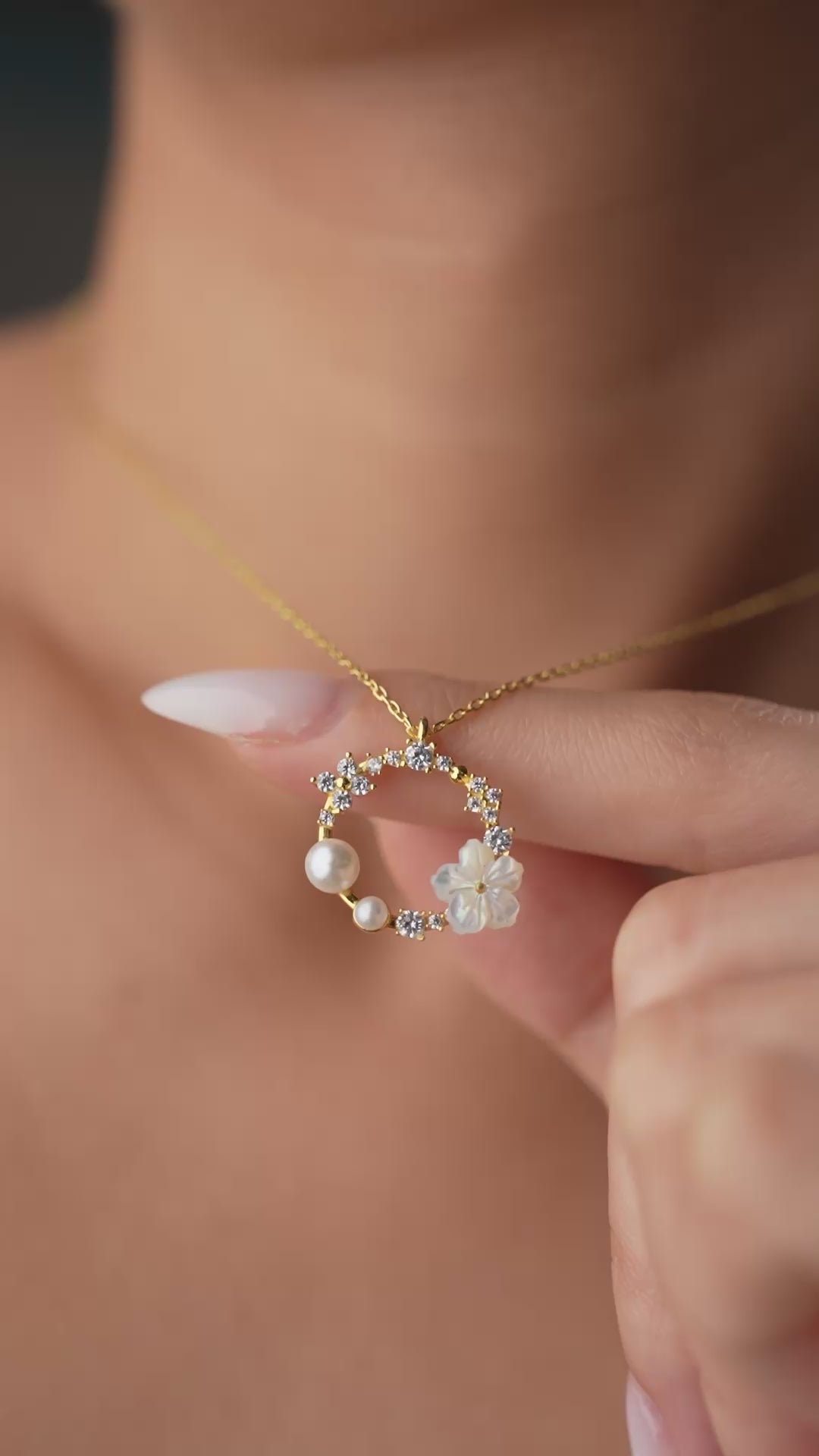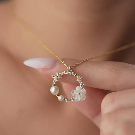 Ketting met Parel & Bloem - 925 Zilver Verguld