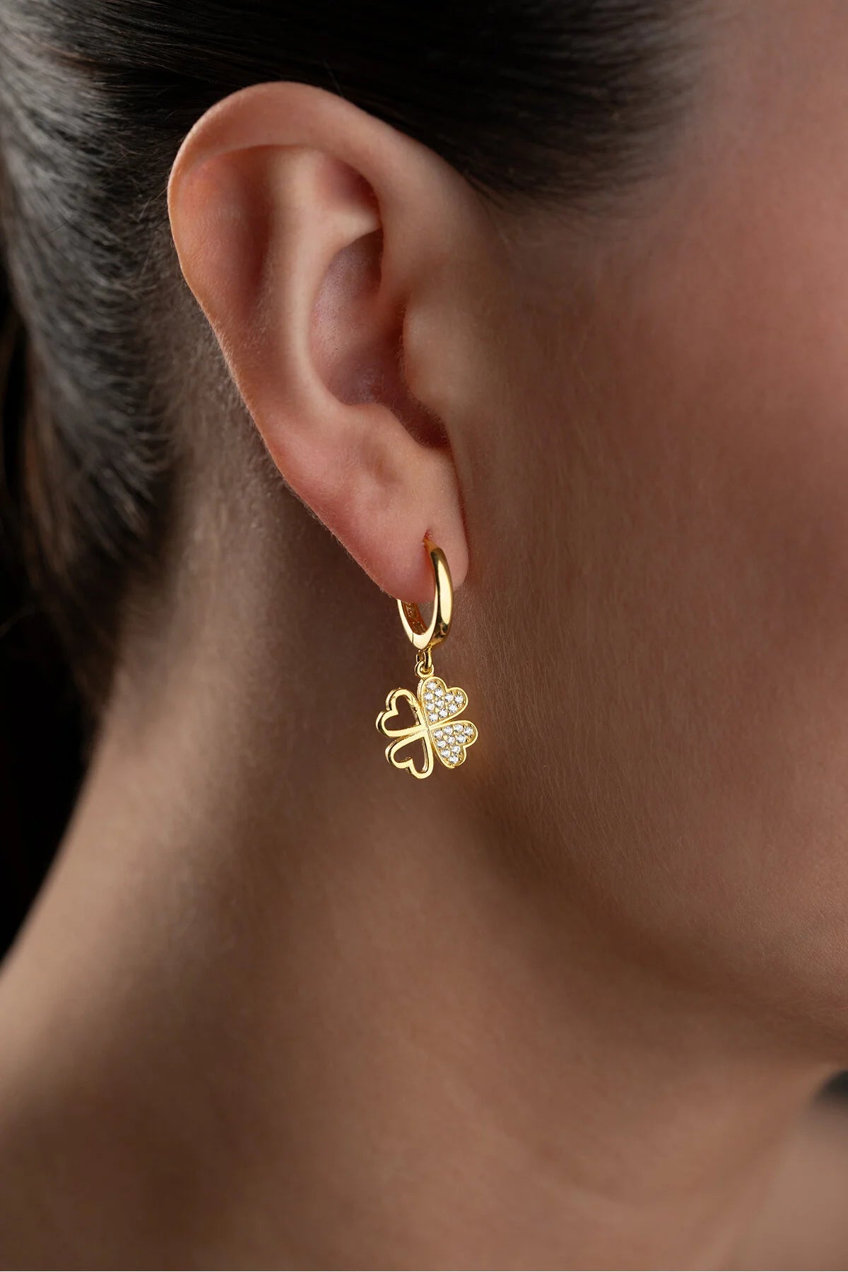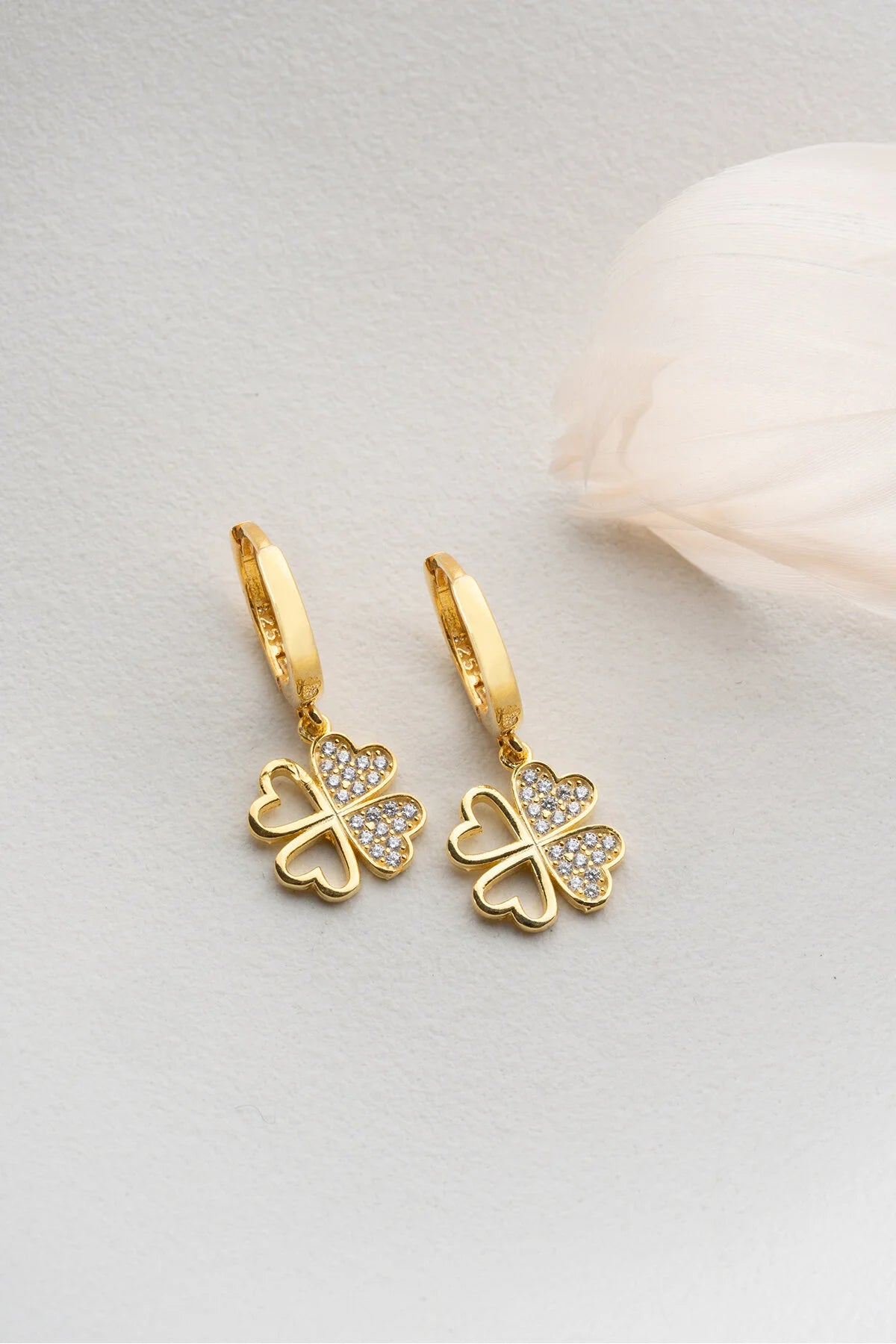 Elegante oorbellen van verguld 925 sterling zilver met een klavertje vier ontwerp en fijne steentjes. Perfect voor dagelijks gebruik of speciale gelegenheden.