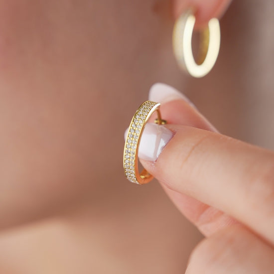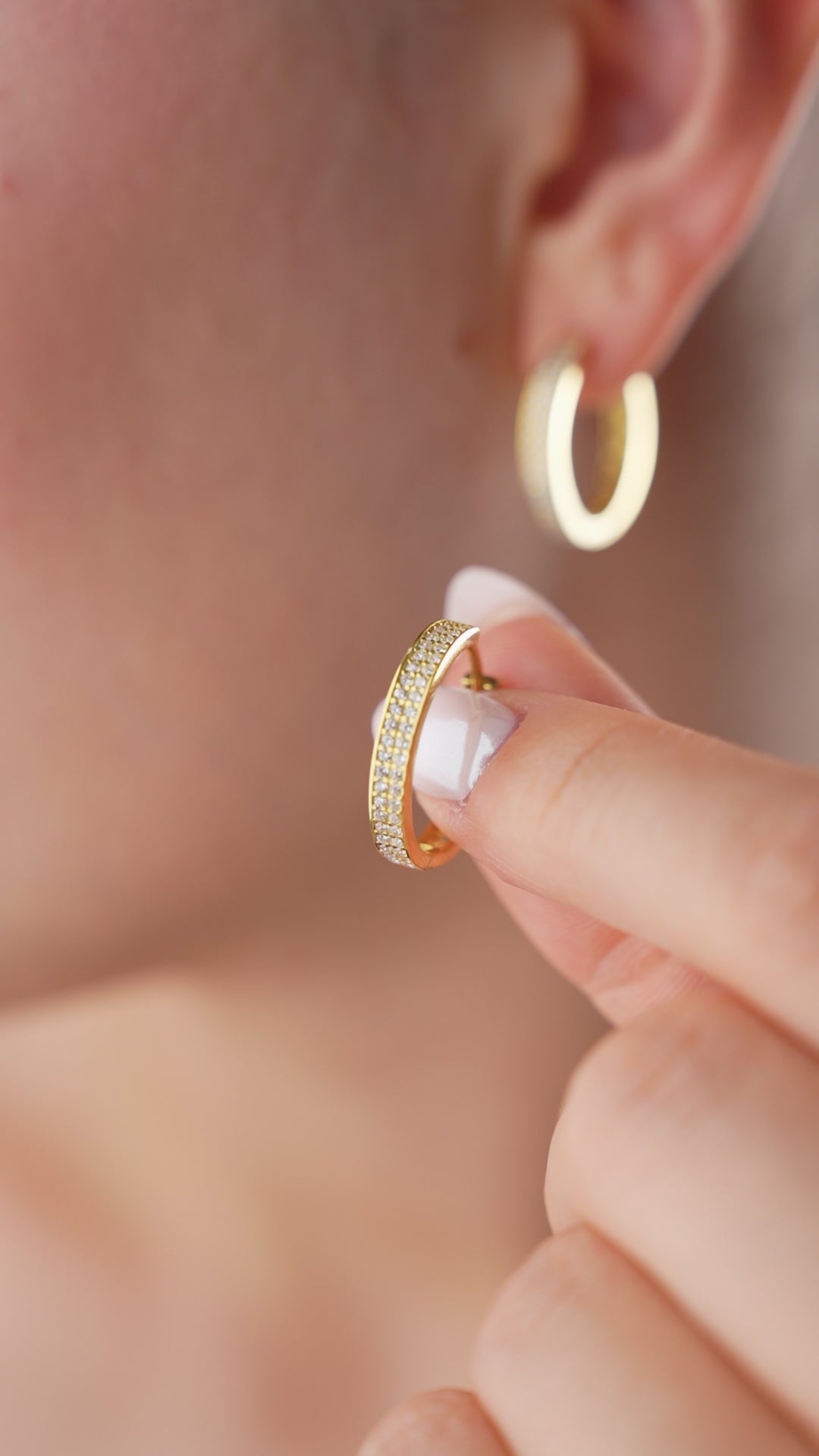 Les mini-créoles LunaShine 925 allient simplicité et luxe grâce à leur double rangée d'oxydes de zirconium et leur finition plaquée or. Parfaites pour un look subtil et chic !
