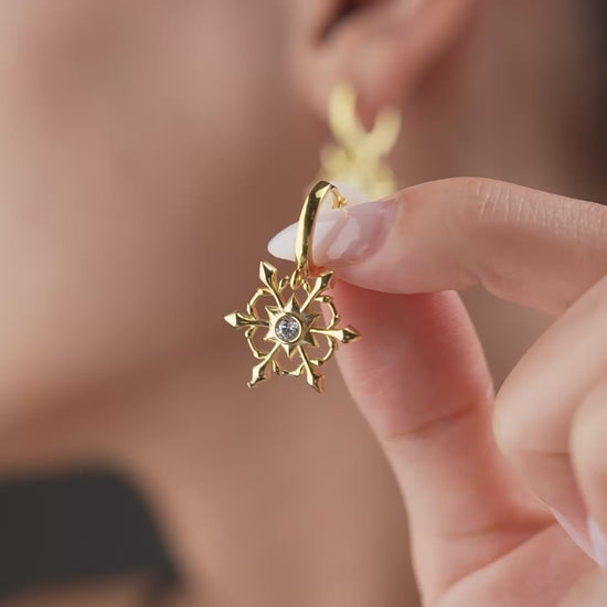 Boucles d'oreilles dorées en forme d'étoile moderne avec un zircon étincelant au centre.