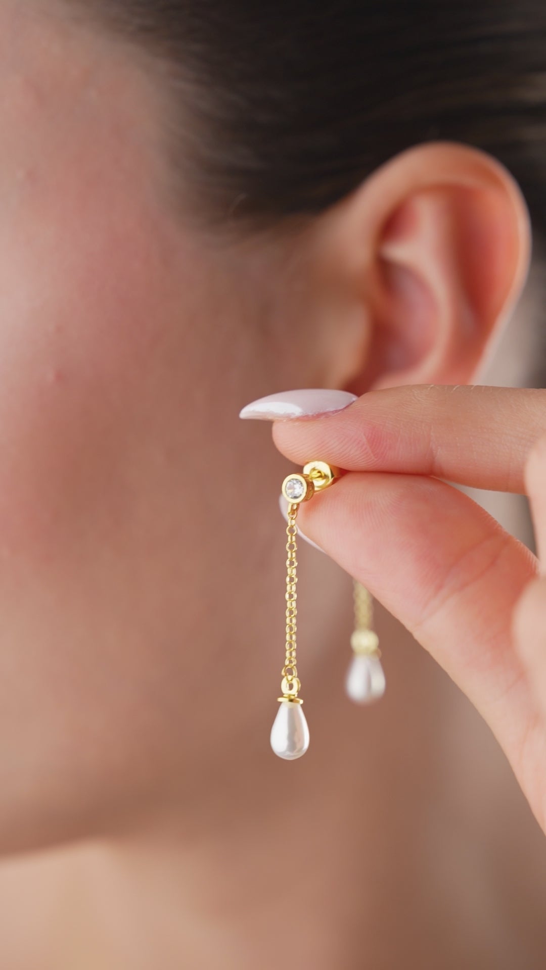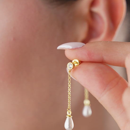 Une subtile goutte de perle suspendue à une fine chaîne en argent – une boucle d'oreille élégante et légère, parfaite pour n'importe quel look.