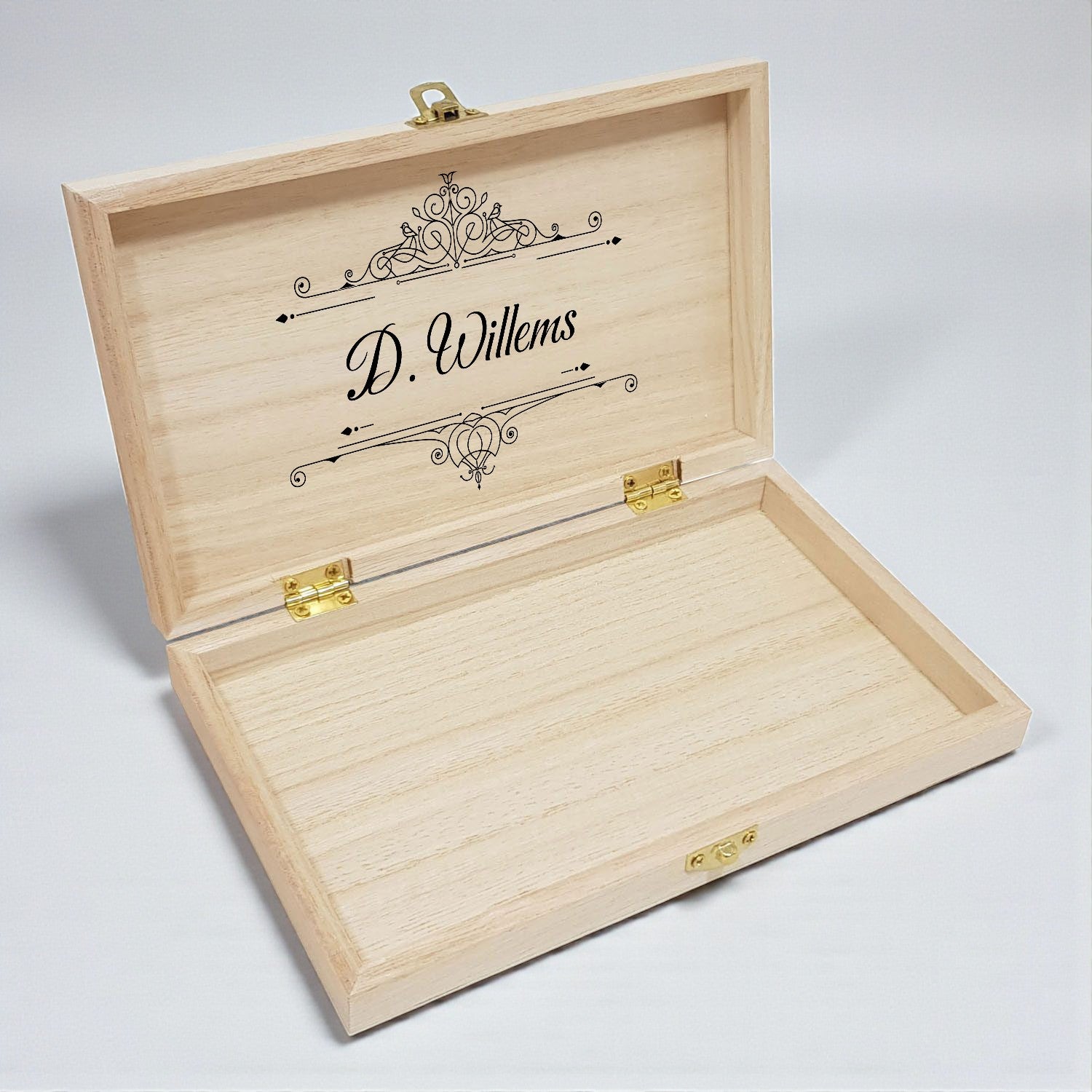 Laat jouw woorden voor altijd achter in een elegant houten doosje. Personaliseer met een naam, datum of persoonlijke tekst en maak het uniek.