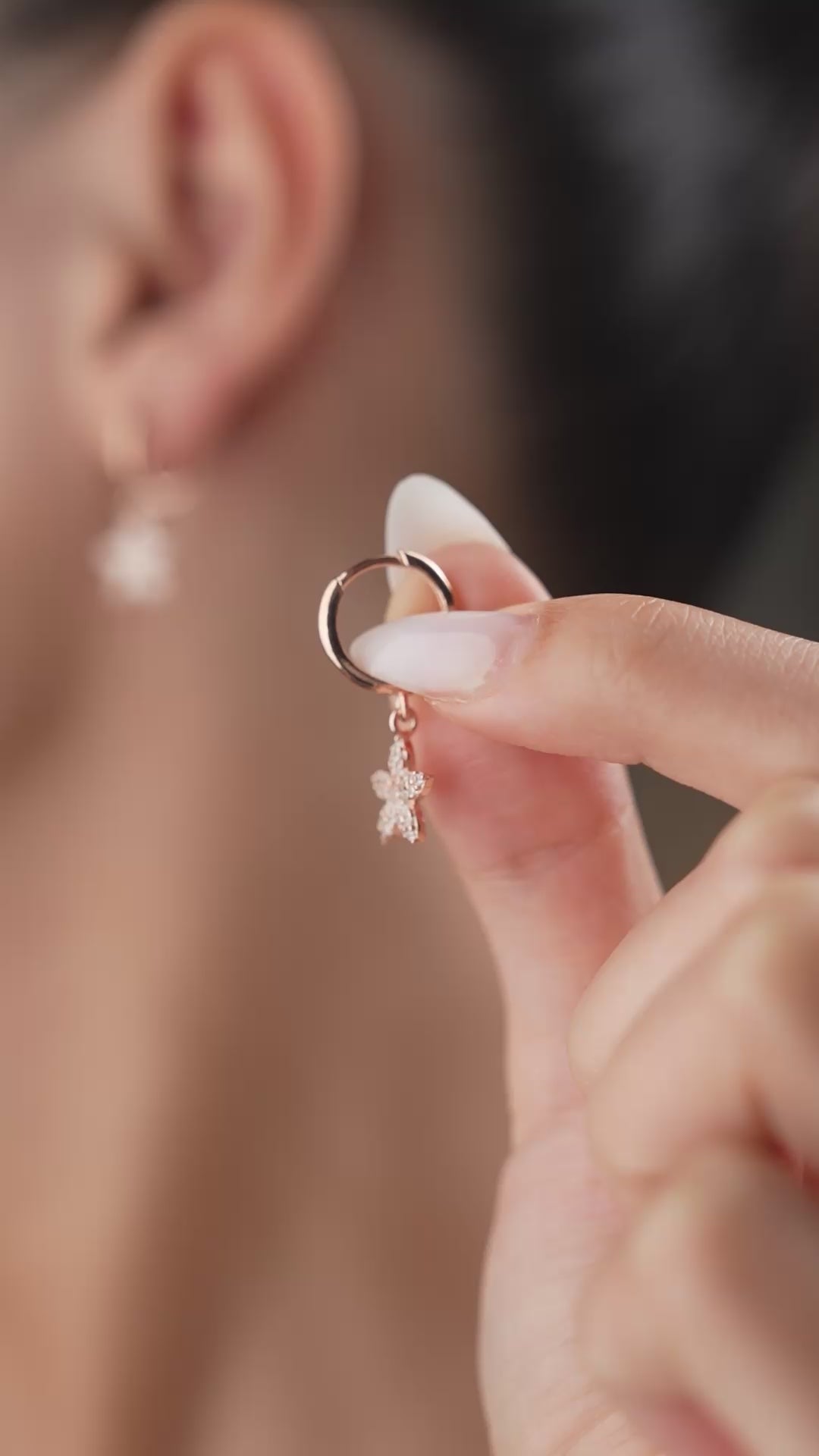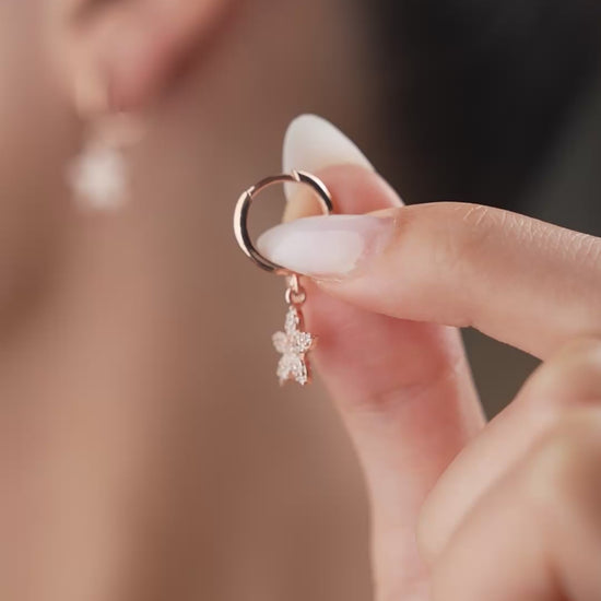 Boucles d'oreilles plaquées or rose ornées de fleurs scintillantes et de pierres.