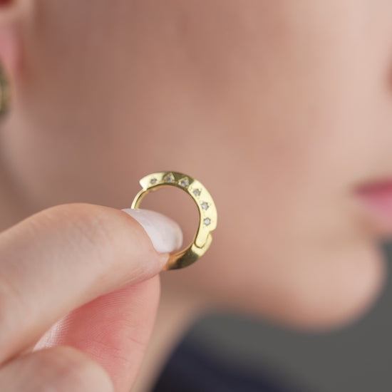 Créoles scintillantes – Boucles d'oreilles triangulaires en pierre | Argent & Doré