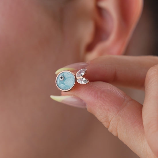 Marbliss Oorbellen combineren de kalmte van de zee met stijlvolle eenvoud. Met hun blauwe steen en fonkelende details voegen ze een frisse touch toe aan je zomerse outfit.