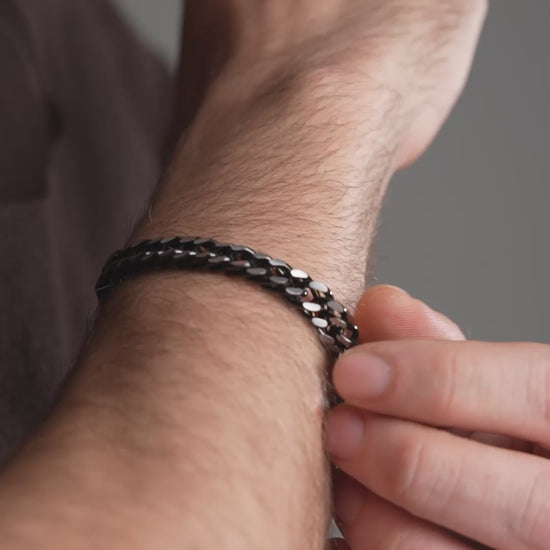 Een stoere herenarmband van staal met een krachtige zwarte afwerking. Modern, comfortabel en perfect voor dagelijks gebruik dankzij de kleurvaste kwaliteit.